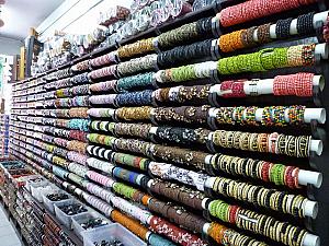 道路から見える展示商品の数は圧巻!クタやスミニャックには数あるビーズ・アクセサリーのお店ですが、とにかくカラー・バリエーションが豊富、デザインが豊富。足を進めるごとに異なった魅力のアクセサリーが目に飛び込んできます。ビーズだけではなく、木のバングル、起毛のベルト、貝殻のネックレスとものすごい陳列数に飽きのこないお店です。