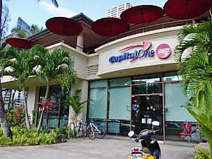 ワイキキなのに、そしてファーストフード店でもないのにコーヒーが$1.50で飲めて、Wi-Fiも自由に使え、エアコンも効いている穴場がここ。アメリカの大手銀行キャピタルワンが経営するカフェで、飲み物以外にも朝食、ランチ、ドーナツ、スナック類もあります。イス席、ソファー席があるので、その時の気分で席を選ぶこともできます。2階にはエアコンが苦手の人には嬉しいテラス席もあり、外の景色を見ながらの会話も弾むことでしょう。一人で来ている人も多く、買い物に集中したい時は彼をここで時間潰しさせるのもいいかもしれません。土曜は午後4時迄、日曜はお休みなので要注意です。