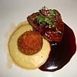 いよいよディナー。まず始めにパンとバターが運ばれてきます。そして注文した前菜「シーフード盛り合わせ」がやってきました。ジャンボシュリンブ、カニ、オイスター、セビッチェなどのシーフードが、桶(おけ)というかたらいの様な入れ物に盛られてきます。カニは食べやすい様に切れ目がはいっているので楽々。新鮮なシーフードを少しずつ色々たべられての26ドルは満足で、シーフード好きにお勧め。前菜メニューはどれも試してみたい内容で迷います。