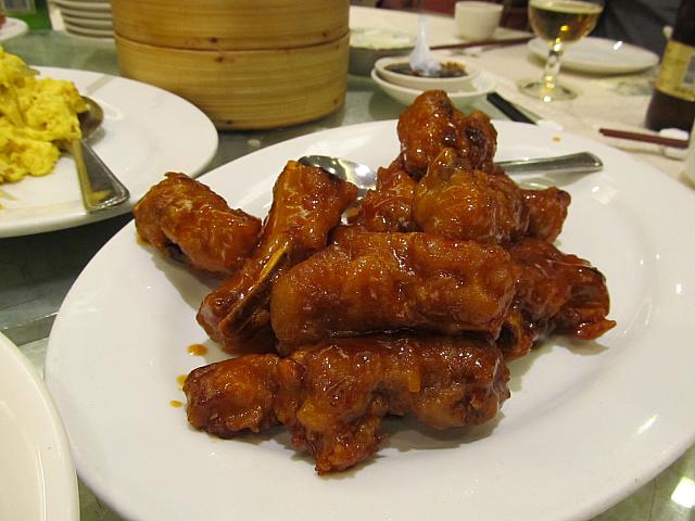 北京料理の定番、エビのから揚げの唐辛子ソースかけ。新鮮なエビを使用し、プリプリとした食感がたまりません。さきほどの紅焼元蹄でも使用した、果皮から作った酸っぱ辛いソースは食欲をそそります。お酒のあてにもぴったりな味ですよ。