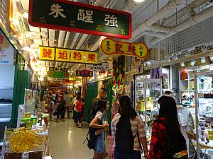 小さなショップが並ぶこのエリアは、古い香港を再現したにもかかわらずデザインは今風。昔の映画館の椅子、ポスト、体重計、生活用品などがインテリア的に随所に飾られ、またそれぞれの通路にテーマ性があります。特に天井をはじめとした細かい場所に工夫が凝らされているので、くまなくチェックするのをお忘れなく。一角には屋台風のフードコートもあり、小食と呼ばれる香港風のおやつなども味わえます。