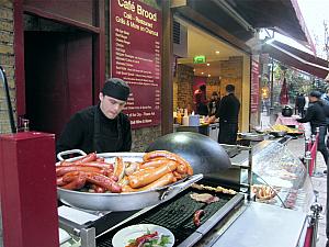 バラ・マーケットに行ったことがある人はきっと観たことがあるこのカフェ。高架の手前の階段を降りていくとサザーク大聖堂の目の前で、外にBBQやパエリヤ鍋を広げ、なんともよい香りを漂わせているお店。マーケットに行く前にもうすでに腹ごしらえをしてしまいたくなるほど。その場で買って中のカフェでも食べれますが、オープンスペースのテーブルや大聖堂の中などでピクニック気分で食べるのもおすすめです。