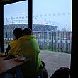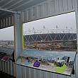 DLRのプッディング・ミル・レーン駅から、仮設の通路を歩いて3分ほどのところにある、黄緑色のコンテナが数個重なっただけの小さなカフェ。ところが、その店内から見える風景は8万人収容の巨大なメーンスタジアムとその周りのオリンピック・パーク。まだまだ工事中ですが、見とれてしまうこと請け合い!プレハブ造りそして大きなテーブルが2つだけのそっけないお店なのに居心地がいいのは、みんなが見ている景色が同じだからかもしれませんね。飲み物だけでなく、エコな食材から作られた軽食も自慢です。