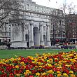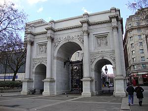 その名前の通り大理石で出来た凱旋門で、バッキンガム宮殿を設計したジョン・ナッシュによるデザインです。本来はバッキンガム宮殿の正門として建てられたのですが、ヴィクトリア女王時代の宮殿改築(1847〜1850年)のとき、「狭すぎて王室公式の馬車が通れない」との理由からこの地への移動を余儀なくされたとか・・・門の南側はオープントップ観光バスの乗り場になっています。