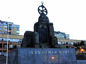 1606年12月、ロンドン東郊外のテムズの岸「ブラックウォール」から、3艘の小さな商船が黄金や宝物を求めて新大陸、つまり米大陸へと向かいました。いま残されている記念碑は1928年に駐英米国大使が新大陸を目指した17世紀の英国人らをたたえて建てられたものです。記念碑のある場所は、世界の海を席巻した英国の貿易商「東インド会社」の埠頭があったところ。また、記念碑の約300m西側には、東半球と西半球を分ける標準子午線に沿って、タイルが埋められています。