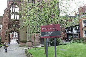 14世紀に建てられました大聖堂でしたが、この街に軍需産業が発達していたことが災いとなり、1940年のドイツ軍による空襲に遭い壁の一部のみ残しあとは燃えてしまいました。第二次大戦後に新しい礼拝堂が隣接地に建てられましたが、こちらはとても現代的な雰囲気を持ちます。Ruinsの敷地内にコベントリー全体の観光案内所が設けられています。