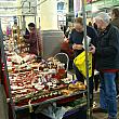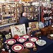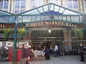1897年、ビクトリア女王即位60周年「ダイヤモンド・ジュビリー」記念として建てられたジュビリーホール、古びた建物の中で屋台を区切るためのたくさんの細い鉄骨が目立ちます。 立てかけられたり、机の上に広げられている品物は、古着や本、古いポスター、アクセサリー、食器、おびただしいカトラリー、それに日本人には理解不能な古めかしいモノたち。日替わりでストール(屋台)のお店が変わるこのマーケットは、月曜日がアンティーク、火曜日から金曜日までがクラフトや洋服、土日が手作りの小物たち、となっています。