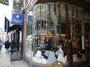 1970年からここで営業をしているお店は、いろいろなフィリングをハードタイプのチョコで包む形のチョコレートを売っています。チョコの中身はコーヒーやフルーツ、花の香りのするクリームなど、どれもおいしそうで迷ってしまいます。古めかしい字体の金文字が書かれた淡いピンク色の箱に入っているのは、ピンク・シャンパン・トリュフ。これはシャンパンの香りがするクリームをピンク色のチョコレートでくるんだもの。値段はチョコの種類ではなく、トータルの重さで決まります。英国のチョコはカカオの含有率が少ないものが多く、フランス人はこれをチョコとは認めないそうです。でも、このお店ではフランスからやってきた創始者、マダム・シャーポネルのレシピを今も守り続けています。