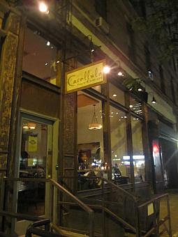 隠れ家のようにひっそりと佇むカフェ。とは言ってもマニアのためのカフェはなく友達同士で集まる気楽な場所。小さくて温かみのある店内はワイン片手におしゃべりに興じる人でいつも賑わう。メニューは表が料理メニュー、裏がチーズリスト。常時40種類あるチーズをつまみにグラスを傾けるのも良し。料理を数種取り、しっかり食事も良い。もちろんその両方も可能。チーズの種類は店員さんに質問すると親切に教えてくれる。料理は全て小さいので色々試せる。甘党には席で生クリームをたっぷりかけてくれるチョコレートケーキがイチ押し。