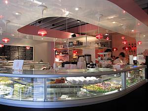 ミッドタウンイーストはオフィス街にあるマカロン専門店。マカロンは常時約20種類。チョコレートやピスタチオの定番から抹茶、クリームブリュレ味、ライチ味などの少し変わった味もそろえている。またサンドイッチとサラダの軽食メニューが豊富。お店で焼いているアーモンドクロワッサンは朝食にもおやつにもおすすめ。国連から程近く、お茶休憩にもランチにも利用できるので覚えておいて損はない。店内は広くはないがピンクでスイーツショップらしい甘いインテリア。イートイン席あり。