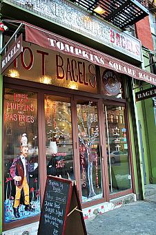 お店の奥で作られているお手製ベーグルはおおきめでもっちり。約15種類あり、おすすめはフレンチトーストベーグル。クリームチーズフレーバーもエスプレッソ、チョコレートチップクッキードウ、バースデーケーキなどお店オリジナルがたくさん。このお店ならではの組み合わせを試してみよう。また、スモークサーモンがたっぷり入るロックスサンドイッチも評判がいい。お店中程のカウンターでオーダーし、名前を告げるシステムになっている。イートインスペース完備。気候の良いときは中庭で食べるのも気持ちがいい。