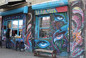 ストリートアートで有名なブッシュウィックにあり、お店の壁がストリートアートのユニークなコーヒーショップ。ストリートに面した窓口で注文、席はカウンターのみの小さなお店で驚くかも。ほとんどのお客さんがフラッとやってきてテイクアウトをして帰って行く。飲み物はラテ、エスプレッソ、抹茶ラテ等もあり小さいながらも種類豊富。またペイストリー、ベーグル等も扱っている。お値段も全体的に安い。ご近所さん気分でカウンターでコーヒーを楽しもう。
