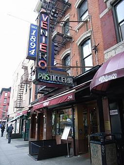 店内の奥まで続く長いカウンター内に、ぎっしりとスイーツが並んでいて、まさにスイーツ天国!ビスコッティやカノリ、ナポレオンなど、トラディショナルなイタリアンスイーツから、一口サイズのミニタルトやシュークリーム、さらに奥のカウンターにはチョコレートケーキなどのスライスケーキが置いてあります。ここの一番人気は何と言ってもニューヨーク・チーズケーキ。濃厚な味わいながら甘さは控えめなところが人気の秘密。昔から変わらないレトロな雰囲気のカフェが隣接し、そちらでカプチーノと一緒にスイーツをいただくことも可能。