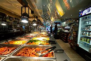 ペンステーションから徒歩1分、賑やかな駅前の外れにあるカフェ兼デリ。他のマンハッタンのデリより広々としていて、店内に入ればまず焼きたてのピザの香りが食欲をそそります。豊富な種類の量り売りビュッフェが店内の中心に並び、サンドウィッチやパニーニなどはその場で注文してから作られます。多くの人たちがテイクアウトやケータリングでの注文のため、2階のテーブルはランチタイムでも比較的余裕があり、ゆっくり食事が楽しめ、観光客にも大人気です。フレンドリーな店員がいつでも出迎えてくれるアットホームな店内も魅力です。