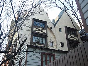 グリニッジ・ヴィレッジのベッドフォード・ストリートにある、ユニークな屋根のデザインが印象的な建物です。1830年に普通の住宅として建てられましたが、1926年に建築家クリフォード・デアリーによってアーティストのための家として建てなおされました。アーティストたちに創作のインスピレーションを与えるようにとデザインされた建物は、その後たくさんの芸術家、作家、演劇関係者などが住んだと言われています。白い壁に茶色の窓枠に、高い三角形のユニークな屋根は、まるでおとぎ話に出てくるようなデザインで常に観光客に人気のスポットです。