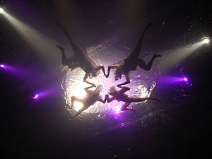 題名はスペイン語でFUERZA=力、BRUTA=ケダモノという意味だそう。その名の通り、パワフルで激しい音楽とダンス・パフォーミング。役者たちは天井から吊り下げられ、空中で踊ったり紙吹雪の中を走り抜けたりと大迫力。頭上には大きな空中プールが現れ、その中をパフォーマーが泳ぎながらダンス。劇場内全てが舞台なので場面毎に観客も一緒に移動。席は無くオールスタンディング!激しい音楽に合わせて、観客も一緒に踊る叫ぶの大騒ぎ。台詞は無くパフォーマンスのみですが、神秘的な世界に魅せられる大興奮なショーです。