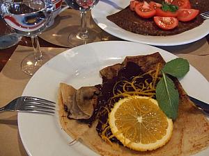 「日本人街」とも言われているオペラ界隈にあるクレープ/ガレット屋さん。美味しいクレープやガレットを作るために、新鮮な牛乳やブルターニュの塩バターなど、高品質な材料を使っています。上にのった具も新鮮。例えば「オレンジピール(オレンジの皮)とチョコレート」を頼むと、オレンジピールだけでなくスライスしたオレンジやミントの葉も添えられてきます。見た目が美しく香りも高く、チョコレートとオレンジとミントが口の中でまろやかに溶けます。