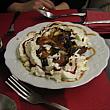 こちらの店名は「家族の空気」。その名の通り、アットホームな雰囲気です。実はこちらのお店、食べ物のメニューは日替わりのメイン料理とデザートの各一品のみ!その日のメニューはお店の看板を見ればわかります。初めて訪れたときはびっくりしたナビですが、でもそのお味は地元の人の折り紙つき。遠くからわざわざ来るという常連のマダムとムッシューいわく、このようなしっかりとしたお味のレストランは最近少なくなってきているそうです!確かにおいしい!「どうやって作るんですか?」なんて質問にも気さくに答えてくれる、あたたかい雰囲気のお店です。