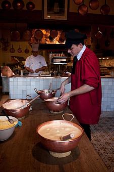 モンサンミッシェルに足を踏み入れるとすぐに、シャカシャカ、カンカンと軽やかな音が聞こえて来ます。リズムよく銅製のボールで卵をふんわり泡立てる音。銅製のボールで卵を泡立てるとふんわり泡立つのです。そのふんわりした泡を暖炉の薪の火の上でさっと、かりっと焼いたオムレツは、モンサンミッシェルの名物。似たようなオムレツもたくさんあるけれど、やっぱりここのオムレツを食べてみたいもの。暖かいもてなしで、モンサンミッシェルを訪れた巡礼者を迎えたプラーおばさんが開いたレストラン。