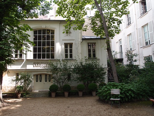 巨匠ドラクロワが最期に住んだアトリエ兼住居が、そのまま美術館になっています。ドラクロワの代表作は、「民衆を導く自由の女神」。誰もが一度は目にしたことがあるのではないでしょうか。美術館の入り口は広場に面しているのですが、普通のアパルトマンやお店と並んでいて少し分かりにくいかもしれません。が、よく見ると、緑色の看板に"Musée national Eugène-Delacroix"(国立ウジェーヌ・ドラクロワ美術館)と表示されているので、緑色のドアを抜けて中に入ります。