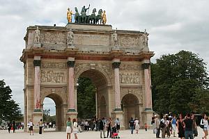 この凱旋門は、ナポレオン1世の命により1808年に完成しましたが、彼はこの凱旋門に満足出来ず、エトワール広場にある凱旋門の建設を命令しました。表面を覆いつくすレリーフはナポレオン1世が勝利した戦争を表現しています。この凱旋門のアーチの中から、チュルリー公園、コンコルド広場、シャンゼリゼ大通り、エトワール凱旋門を見ることが出来ます。すべて一直線に並んでいるんですよ!