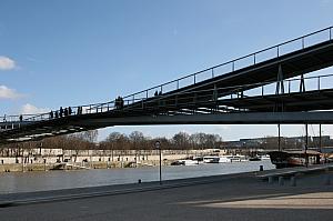 ベルシー公園と新国立図書館を結ぶこちらの橋は、パリ37番目の橋として2006年に完成しました。車の通らない歩行者専用の橋らしく、表面は木製の板で覆われているため歩くと気持ちが良く、犬を連れて散歩している人も多く見られます。また、いくつか椅子が置かれていて、特に晴れて気持ちの良い日にはパリ市民の憩いの場となっています。