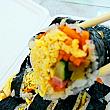 こちらがキョリキンパッ。薄焼卵を細かく刻んだものがご飯と1:1の割合で入っているのが特徴。味もしつこくなくさっぱりとしていて、卵のあまみを十分に感じられる美味しさ!また海苔にぬられているゴマ油も風味が感じられる程度なので、苦手な人でも大丈夫。一度チャレンジして見る価値はあり!