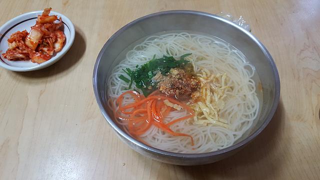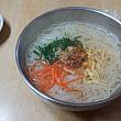キンパに負けないくらいの人気で、キンパとセットで注文されるグクス。煮干しダシのスープに、細い麺の入ったとっても素朴なスープ。どこか懐かしさも感じるようなほっとする味!トッピングもとってもシンプルで、卵の細切り、にら、人参の細切りにヤンニョム(薬味)をスープに溶かして、少しピリッとパンチを効かせていただきま~す!キンパとの相性も最高!!
