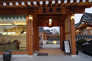 韓屋スタイルのホテル・皇南館に併設されているカフェ。宿泊客以外の利用も可能で、コーヒーやお茶以外にも、ピザやワインなども販売している。