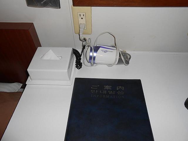 日本用の公衆電話と韓国用の公衆電話が、個室で1台づつ並んでいます。韓国用の電話はフロントでカードを購入。日本用の電話はクレジットカードを利用した、衛星電話なので料金は少々お高めです。