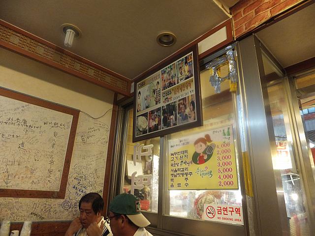 お店の中はかな~り狭い!?二人掛けのテーブルが三つに6人くらいまで座れるテーブルが三つ置いてあります。そんな小さなお店はいつもほぼ満席になるくらいお客さんであふれているので、大きいほうのテーブルは常に他のグループと相席で座るようになります。ちょっと窮屈だけれど、わいわいガヤガヤと地元のお客さんに混じって座るというのもまた楽しいかも!^^また、晩の早い時間(7~9時頃)が特にお店が混んでいて、特に雨の日には行列ができていることも(韓国では昔から、雨の日にチヂミやピンデトッを食べる、というのがあるんです^^)。