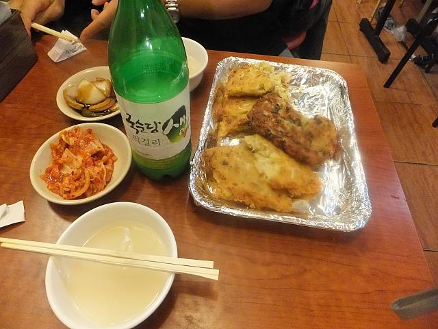 こちらのお店を訪れるお客さんのほとんどはもちろん有名なピンデトッを目当てにやって来ますが、このピンデトッと一緒にほぼ100パーセント注文するお酒。ピンデトッというと、昔から一番合うお酒とされているのはマッコリやトンドンジュなどの濁り酒で、やはりこの組み合わせでピンデトッをいただく人が多いみたい。ちなみにトンドンジュは江原道の八峰山(パルボンサン)というトコロで作られたというちょっと特別な生トンドンジュ!でも、マッコリやトンドンジュの他にも定番の焼酎やビールを飲んでいる方も結構見られます。あまりこだわらず、お好みのお酒で楽しむのがイイかもしれませんネ。