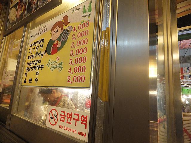 お店のメニューはピンデトッの他に「コギワンジャ」というお肉入りのジョン(チヂミ)、そしてマッコリや焼酎などのお酒類だけ。中でもほとんどのお客さんが注文するピンデトッとマッコリかトンドンジュという組み合わせが定番!お会計は先払い制になっており、注文してお料理ほぼ揃ってきたらスタッフのおばちゃんに直接お金を渡します。それでは、メニューを一つ一つご紹介していきましょう~~!