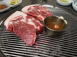 済州市内にある豚焼肉専門店。老衡五叉路(ノヒョンオゴリ)ロータリーすぐ近く。お肉の質が良いと評判で、現地でも人気のお店だそう。お肉の注文は1斤(ハングン、600g)単位で、2~3人でいただいても十分なボリューム。皮付き肉のぶ厚さやプリプリの食感が特徴。「済州在来種黒豚」と「済州一般豚」があるけれど、ぜひ黒豚を味わいたいところ。ご飯モノには豚肉入りのキムチチゲがおすすめ。