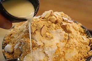 釜山発のコリアンデザートカフェ。ソルビン(雪氷)という細かく溶けにくい氷で作ったかき氷と、インジョルミ(きな粉餅)トーストが有名。かき氷にはきな粉がもりもりにトッピングされたインジョルミ・ソルビンやミルクと小豆ののったシンプルなもの、珍しいチーズのせなどいろいろ。飲み物にはコーヒー類やラテ類のほか、五味子茶など韓国伝統茶もあり。忠武路店は大韓劇場のすぐ横にある。