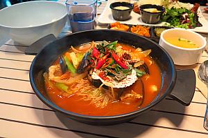 お店の名前「チョルビドン」は、チョルミョン、ビビンバ、トンカツのそれぞれ頭文字をとったもの。それぞれちょっとオシャレにアレンジした創作料理がいただけます。特に普通は辛くて甘酸っぱいソースで野菜と一緒に和えていただくチョルミョンを辛いシーフードスープやクリームソース、トマトソースなどでいただくメニューが斬新で特徴的。チョルミョン独特の弾力のあるツルツル麺と新しい組み合わせのソースやスープがよく合います。ビビンバは韓国料理的な食材を使いながらもオシャレな盛り付け。レッド、ホワイト、ブラックと3種類のソースを選べるチーズトンカツも美味しくて人気です。