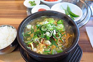 ソウル東部の聖水(ソンス)洞にあるヘジャングッ(酔い覚ましスープ)とコプチャンチョンゴル(ホルモン鍋)のお店。ヘジャングッはヤン(牛ミノ)とソンジ(牛の血の寄せ物)が入ったものがあり、両方入ったヤンソンジヘジャングッがオススメ。スープは辛さ控えめですっきりしていて、モツ系スープ特有の臭みがなくとっても美味。豆もやしもたっぷりで、ホントに酔い覚ましに効きそう。牛は韓牛を使用しているそう。