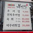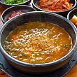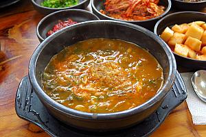 全羅北道の南原(ナムォン)といえばチュオタン(韓国式どじょう汁)。たくさんのチュオタン専門店が集まる南原の「チュオタン通り」でも、現地の人が昔からよくオススメするのがここ「釜山チプ」。南原チュオタンなのに店名が釜山なのは、釜山から嫁いできて美味しいチュオタンを作ろうと追及した初代店主の出身地からとか。そうやって1967年に創業したお店はすでに50年を越える老舗になっています。ドジョウは挽いてしまって姿の見えないスープは、手作りの味噌が引き立つお味。柔らかいシレギ(干し葉)も特徴。おろしニンニクもたっぷりで、ストレートな素朴さがクセになりそうなチュオタンです。
