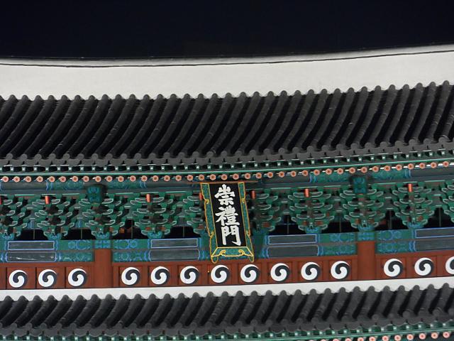 朝鮮時代、首都である漢陽(ハニャン)の周りはぐる~っと城郭に囲まれた城郭都市でした。そんな城郭都市の南側の門が崇礼門。朝鮮建国の王、太祖イ・ソンゲ李成桂により、城門として1398年に創建されました。イ・ソンゲ(李成桂)は首都を定める際、炎の形に似ている冠岳山(クァナッサン)からの強い火気が漢江を越え都城に侵入することを懸念し、炎の模様をしている「숭(崇)」と五行思想の火にあたる「예(礼)」の文字を用い、お互いを向かい合わせて火気を食い止める意味を込め、崇礼門という名に決めたとされています。崇礼門は建設当時から火にまつわる運命もあったようです・・・