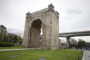 1897年、韓国が中国や日本、ロシアやその他の西欧列強と同じ自主独立国家であることを国内外に宣布するために建てられた記念石造物。かつて中国の使臣を迎えるために使われていた迎恩門を取り壊した跡に建てられました。韓国初の西洋式建物で、フランスの凱旋門をモデルにし、約1,850個の白い花崗岩でできています。本来は現在の位置から東南に70mほど離れた場所にありましたが1979年、城山大路建設のため現在の位置に移動、復元されました。