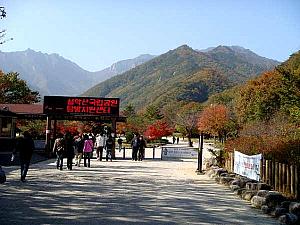 江原道(カンウォンド)に属し、束草(ソクチョ)の西方にある山。海抜1708m。一帯は雪岳山国立公園に指定され、紅葉の景勝地として有名。秋には多くの人が訪れる。