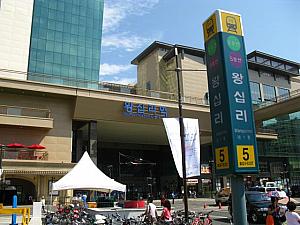 地下鉄2号線、5号線、京義中央線、盆唐線が交差する、ソウル中心部の交通の要所。駅ビルBITPLEXにはEマートや映画館CGV、ショッピングモールEnter-6があり、ショッピングにも便利。ただし乗り換えがかなり複雑なので、案内板をよく確認する必要がある。また駅前から仁川国際空港に向かう空港バスも発着している。