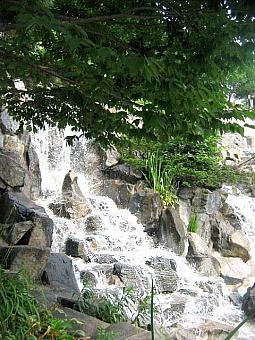 週末には北漢山(プッカンサン)へ向かう登山客で大にぎわいする地下鉄3号線クパバル駅の1番出口を出てすぐ右手のところにある滝。幅が10m、高さが12mというだけあり、ものすごい音を立てながら水が流れ出し、中央には噴水もあります。その滝から噴き出す水煙を見ているだけで暑さを忘れそう!滝の裏手は人が入られるようになっていて、壁一面が水景色!!デートを楽しむカップルの姿も。そんな“銀河の滝”の隣りには小さな滝が3本流れています。岩で囲まれた滝は“銀河の滝”よりは小さめですが、また違った風情があります。