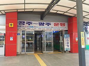 忠清南道(チュンチョンナムド)のほぼ中央に位置する公州の総合バスターミナル。ソウルや地方から公州へアクセスする場合は、高速バスが便利。公州は錦江(クムガン)をはさんで新市街地と旧市街地に分かれ、バスターミナルは新市街地に位置し、公山城や宋山里古墳群など百済の歴史遺産のある旧市街へは橋を渡って川を越える。ターミナル内にはパン屋、公州特産物店、カフェ、食堂があって大変便利。