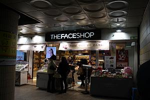 韓国チープコスメの草分け的存在のフェイスショップ!本当にたくさんのお店が釜山市内にもありますが、地下鉄南浦洞駅の乗り場前にもお店があります!駅から降りてすぐ目の前ということもあり、いつもたくさんのお客さん一杯!旅行中に買い忘れたコスメを買うのにも便利です。