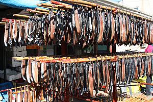 浦項の名物といえばサンマを干したクァメギ。サンマやニシンなどの青魚を冷たい冬の夜に凍らせて、昼は溶かしながら発酵乾燥させて作り、匂いがちょっときつい食べ物ですが、不飽和脂肪酸が高く、血管拡張作用もいいので、成人病予防、女性の美肌効果にも優れた効果があと人気の食べ物。韓国国内でもクァメギといえば浦項市の九龍浦(クリョンポ)で、中でも港のすぐ隣にあるクリョンポ市場にはたくさんのお店や食堂が並んでいます。