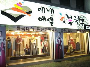 優しいオモニと、明るく若い女性マネージャーさんが切り盛りしている韓服のお店。広々とした店内には、基本的な韓服のほか、伝統を生かしながらスタイリッシュにアレンジされた韓服があり、こちらはパーティーにぴったり。韓服のレンタルも行っており、とってもリーズナブルなので、地元の韓国女性に人気です。(レンタル業の店名は「ナビヤ」。インターネットからのみ受付)。