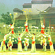 古代庭園に咲く蓮の花の妖精のような少女たちの登場です。が、両手で器用に回すは幾多のお皿!1人あたり6枚の皿を細い棒の先で回しながら、舞やバランス技を決めていきます。皿が棒に引っ付いている訳はないのに 「マグネット式なのかしら?」 と思わずにいられない器用さは、やはり凄い。