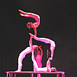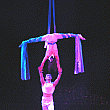 雑技の中のラブソング! 男女が空中を舞いながら愛を語らうこの一幕は、団員選りすぐりの美男美女カップルによって行われます。ちょっと気恥ずかしくなるほどストレートな愛をどうぞ。