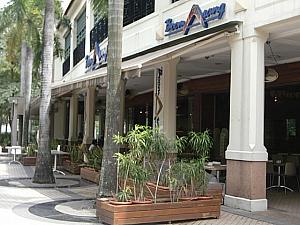 昼間はお子様連れのママが川沿いで子ども達を遊ばせながら楽しくランチタイム、 夜は欧米系のビジネスマンや観光客などで遅くまで賑わっています。店内にはTV画面がいくつかあり、サッカーやラグビーなどのスポーツ観戦を冷えたビールを片手に楽しんでいます。ワインも豊富で店内奥にワインセラールームもあります。お料理はオーストラリアンメニューで、ピッツア・ハンバーガーなどはボリューム満点。キッズメニューやブレイクファストメニューもあります。暑い日に木陰の席でいただくフレッシュジュースも美味しいです。またお店の裏(ギャラリーホテル・エントランス前)にはブーメランエキスプレスがあり、ドリンクやパン、ちょっとしたお惣菜、スナック等のお持ち帰りもできます。